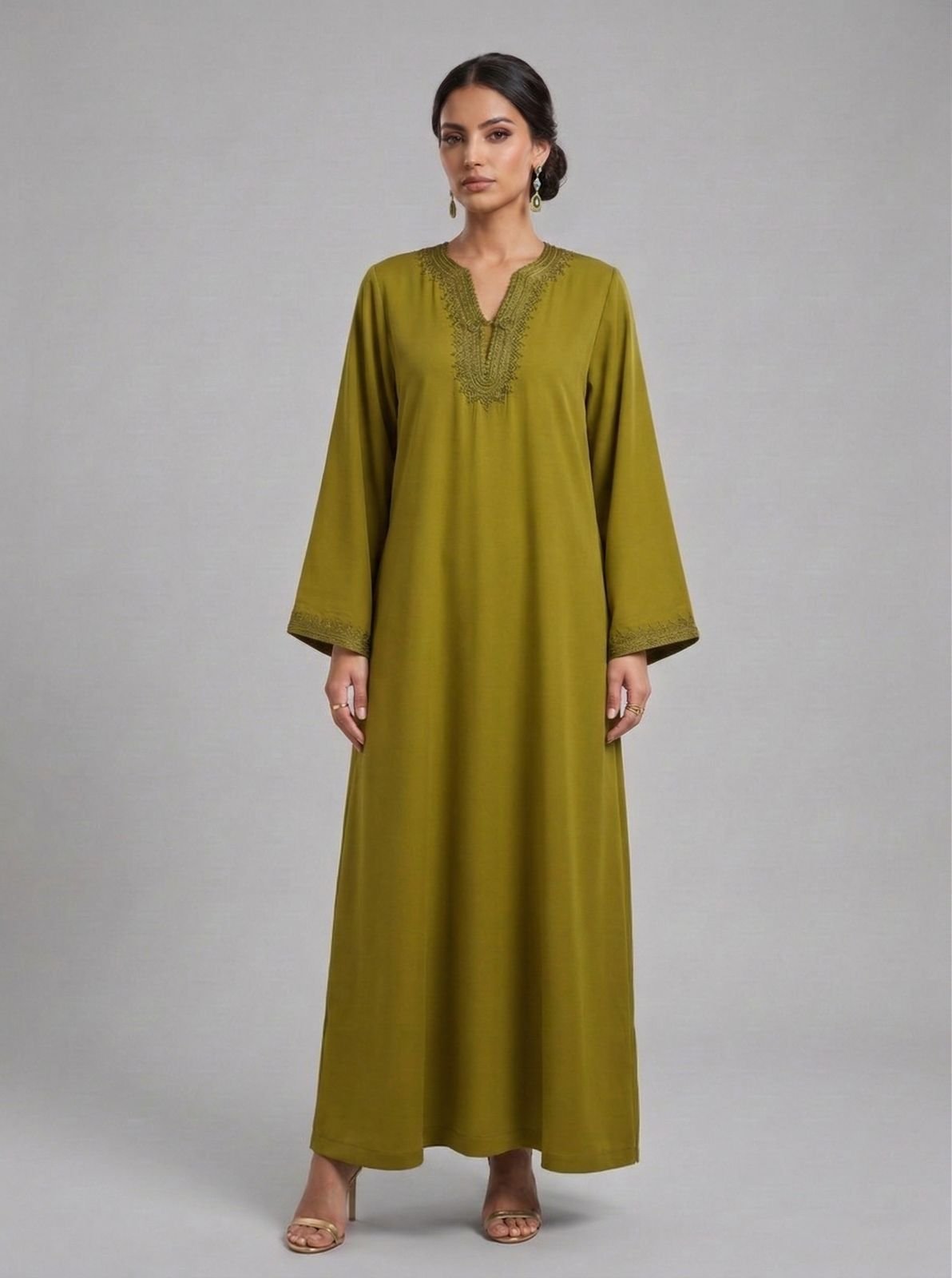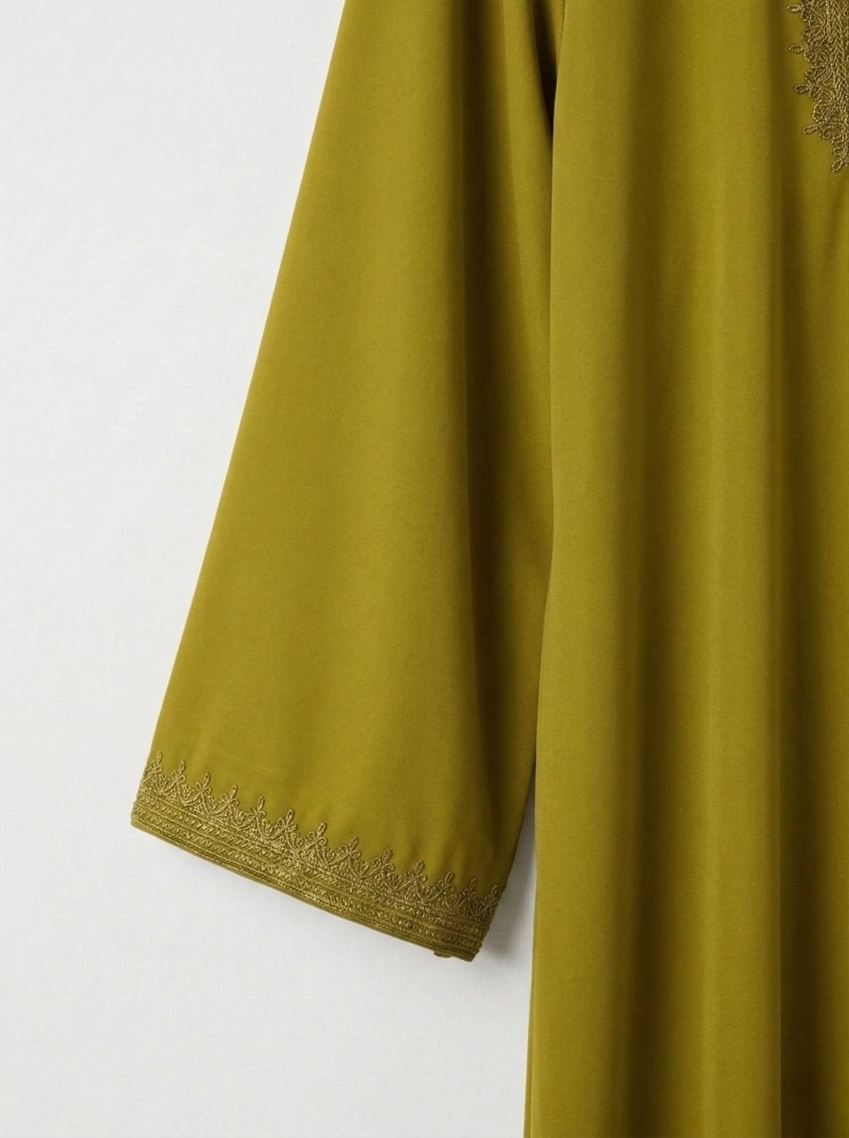 Confectionnée avec précision dans nos ateliers, l’Abaya Caftan Tasnim en vert olive séduit par sa fraîcheur et ses broderies raffinées. Sa teinte naturelle et apaisante apporte une touche moderne et distinguée, tout en sublimant la silhouette. Sa fluidité et sa coupe épurée garantissent confort et élégance, idéale pour vos événements comme pour vos instants du quotidien.