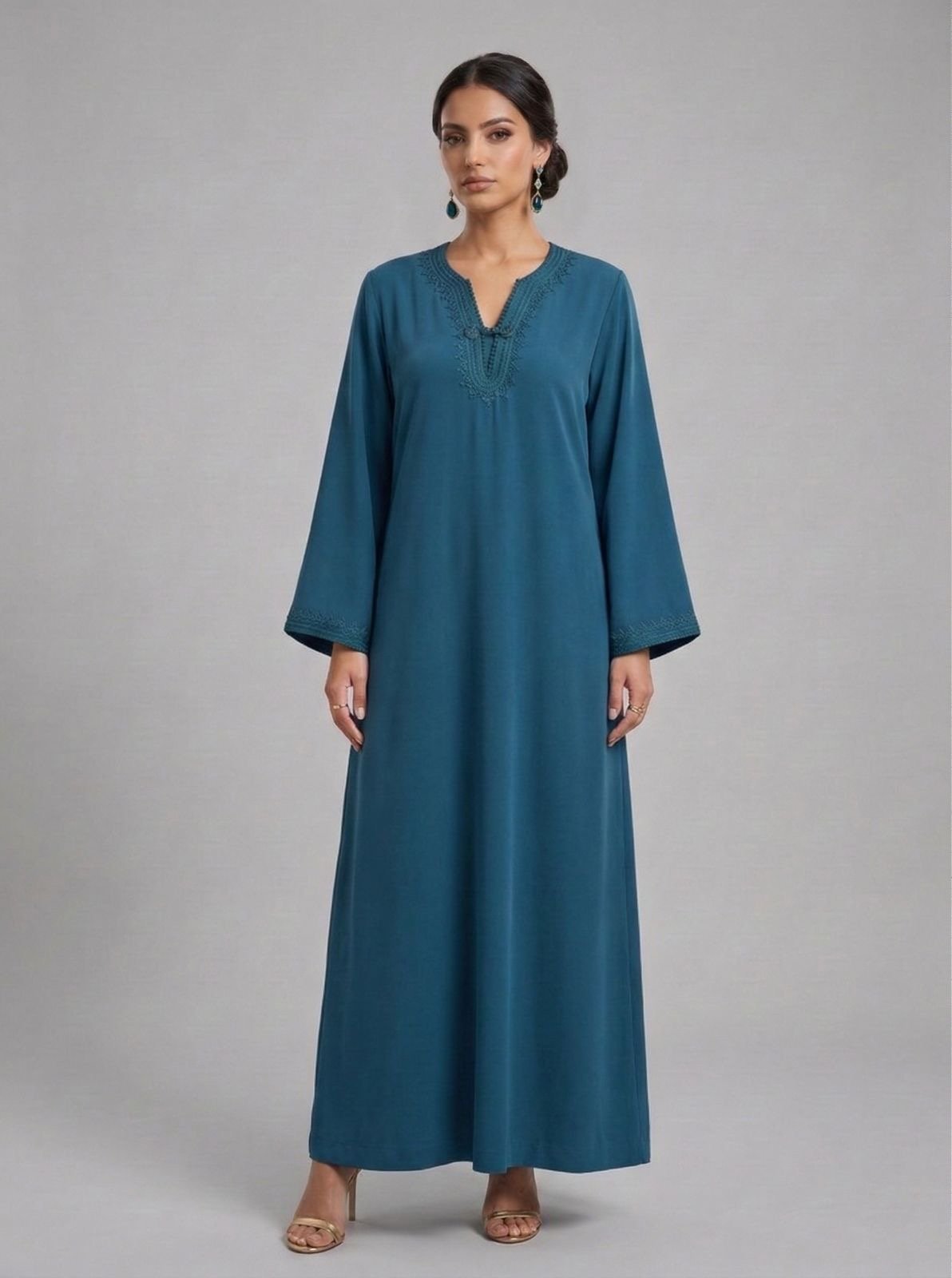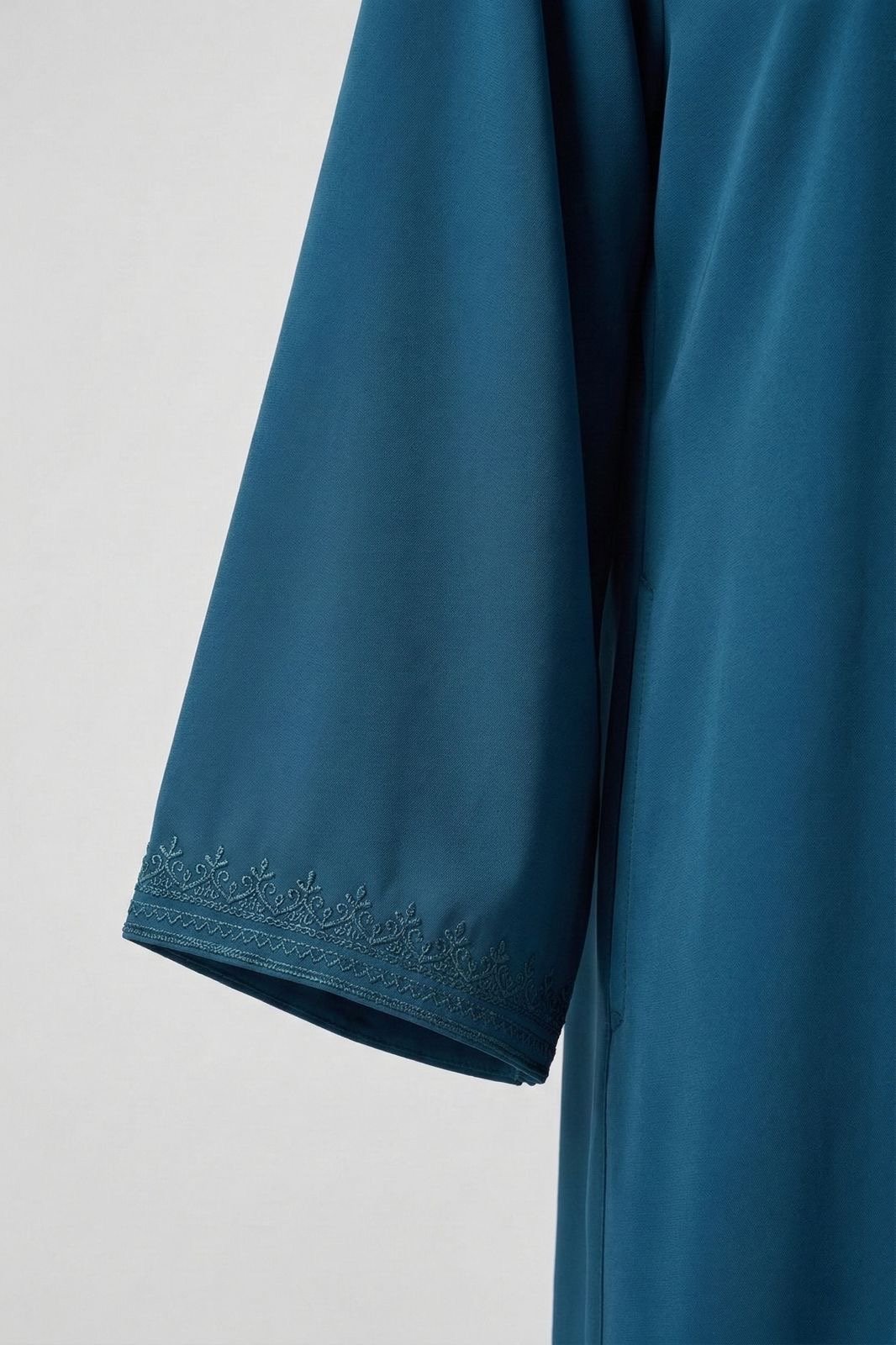 Confectionnée avec précision dans nos ateliers, l’Abaya Caftan Tasnim en bleu pétrole séduit par sa profondeur captivante et ses broderies raffinées. Sa teinte intense et sophistiquée confère une allure moderne et distinguée. Sa fluidité et sa coupe épurée garantissent confort et élégance, idéale pour illuminer vos soirées comme vos moments de tous les jours.