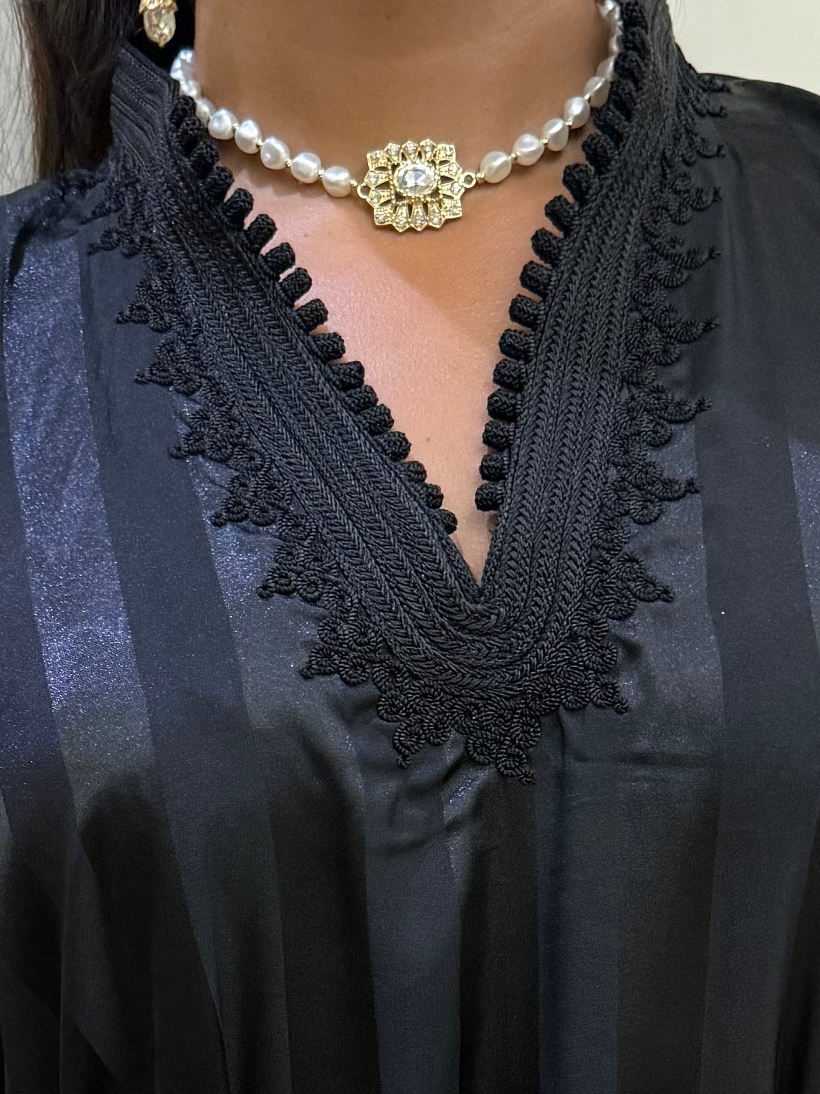 Confectionnée avec soin dans nos ateliers, cette robe deux pièces associe la légèreté d’un tissu en mousseline à la fluidité d’un voile en crêpe, pour un rendu à la fois structuré et aérien.